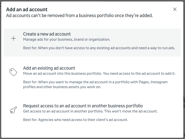Navegue até Contas de Anúncios e, se não houver nenhuma conta adicionada, clique em Add
