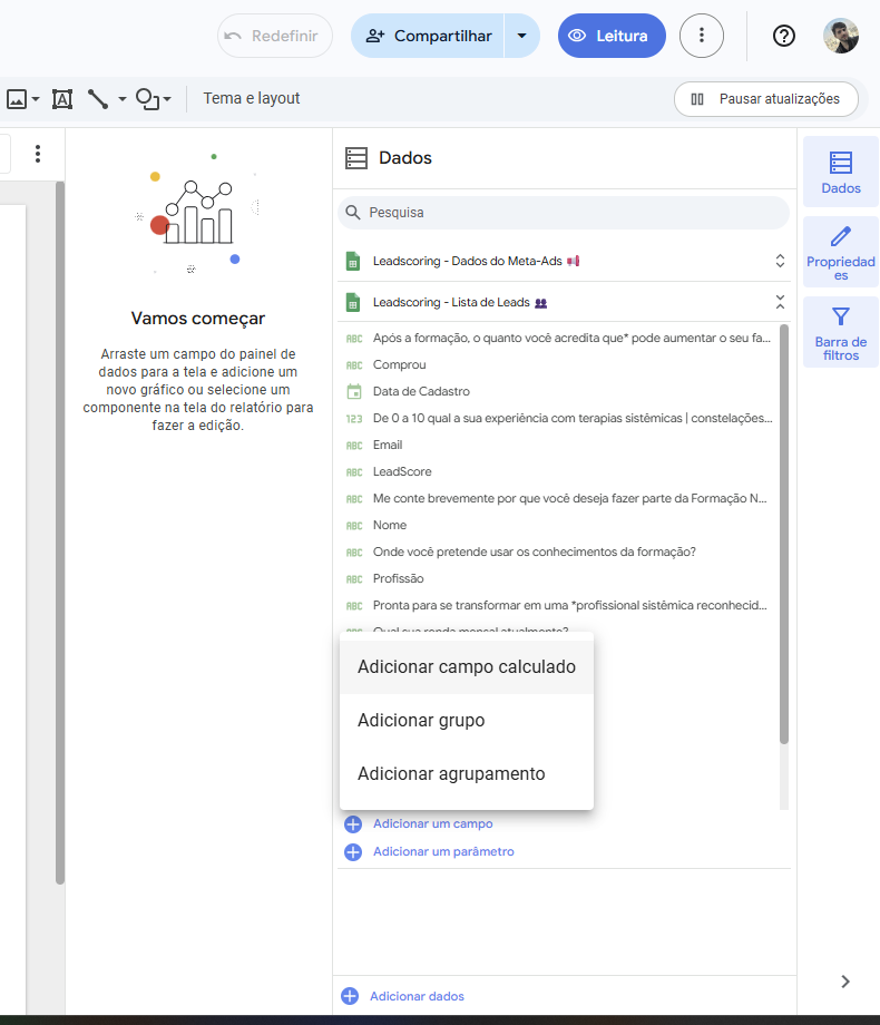6. Criar uma visualização do seu LeadScore no LookerStudio
