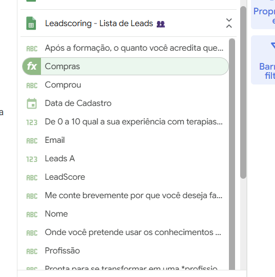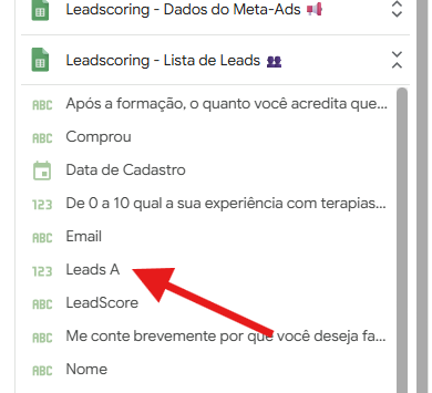 Uma vez que você salvar o Campo Calculado, esse campo de Leads A irá aparecer dentro da sua Fonte de Dados da Lista de Leads