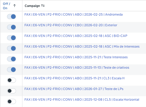 O objetivo é que apenas ao olhar para o nome da campanha já seja possível identificar rapidamente qual produto ou funil ela pertence.
