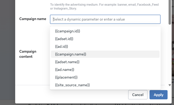 Dentro do Meta Ads o processo acaba sendo mais simples, pois existe o recurso de UTMs dinâmicas. Nele, você configura para que os nomes da campanha, conjunto e anúncio sejam puxados automaticamente para os valores dos parâmetros de UTM escolhidos.