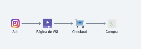 Uma VSL normalmente é o núcleo de um funil de tráfego direto. O fluxo básico é: